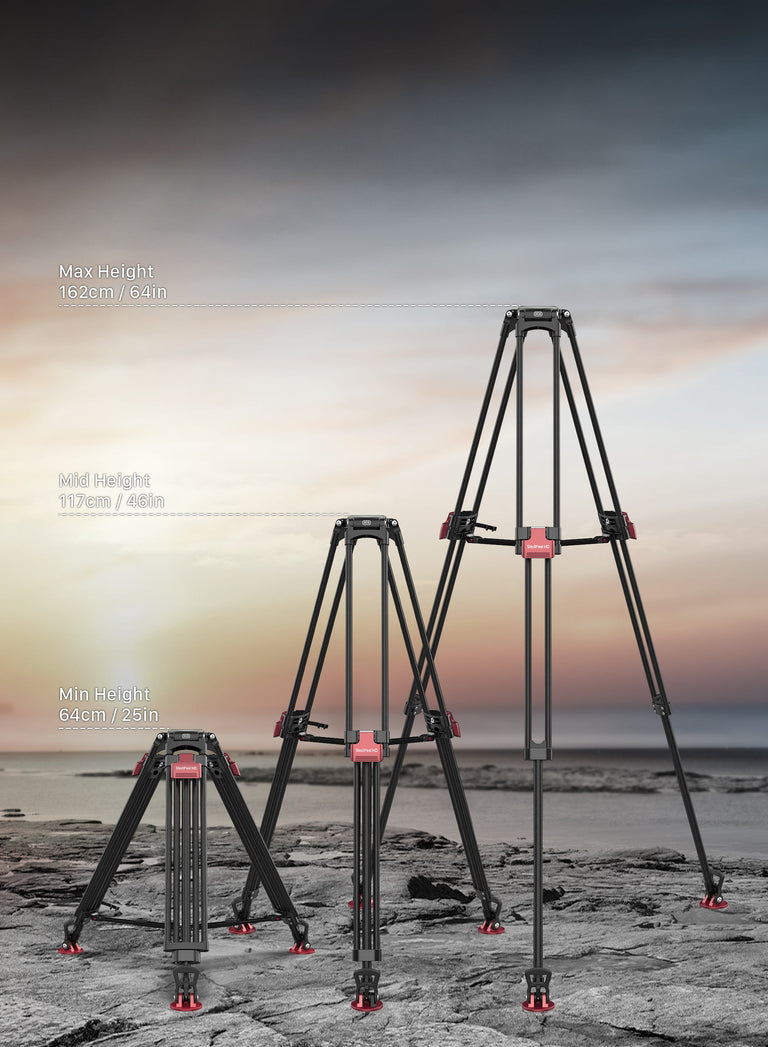 The StediFast HD video tripod's twin-leg design ensures unmatched stability—essential for professional storytellers. With 16mm tube, it offers stronger and more sturdy support for increased load capacity to 35kg.